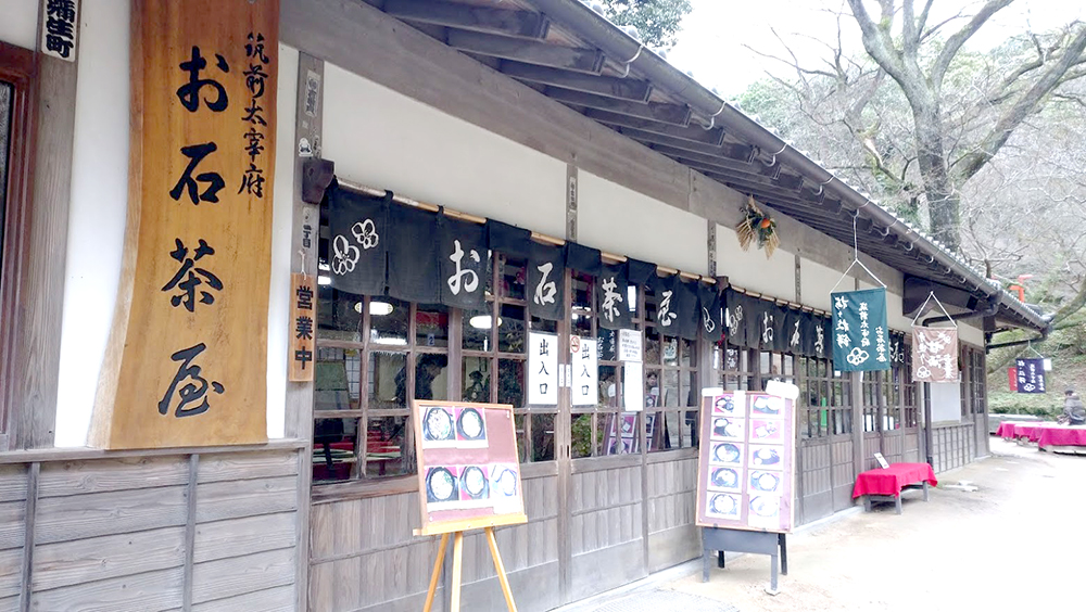 県民も愛する大宰府の名物で、たくさんのお店が参道に並んでいます。名前に梅と入っているので梅の味を想像する人もいらっしゃるそうですが、梅は一切入っていません。餡子が入った焼き餅です。出来立てがおいしい!のは言うまでもなく!お土産で家に持って帰って、電子レンジで温め直した柔らかくて香ばしい香りの梅ヶ枝餅も最高です。我が家と地元友人宅が好きなお店は「お石茶屋」さん。もちろん、どちらのお店もおいしいですよ!