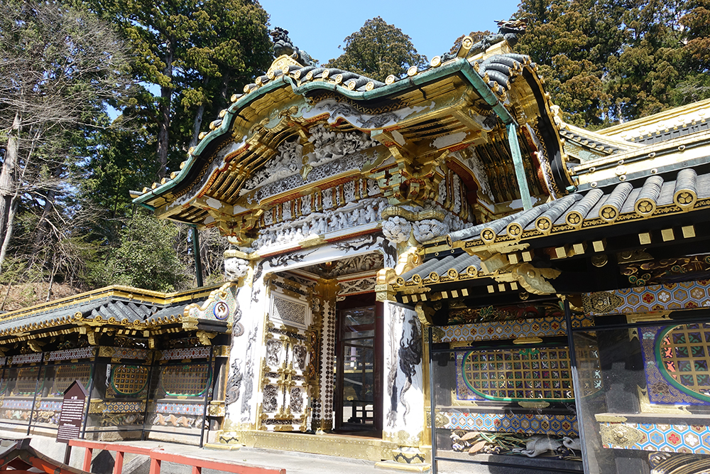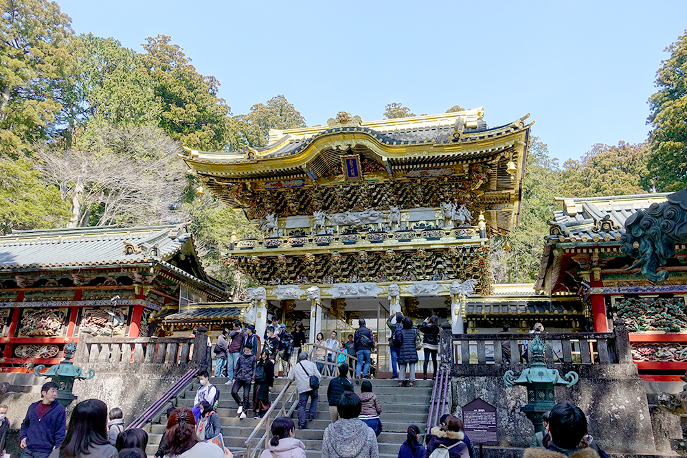 黄金に輝く国宝の門。「日暮の門」とも呼ばれるそうで、その名の由来の通り、いつまでも見惚れてしまうキラキラとした美しさです。2017年3月に12億円かけた修理が終わっています。